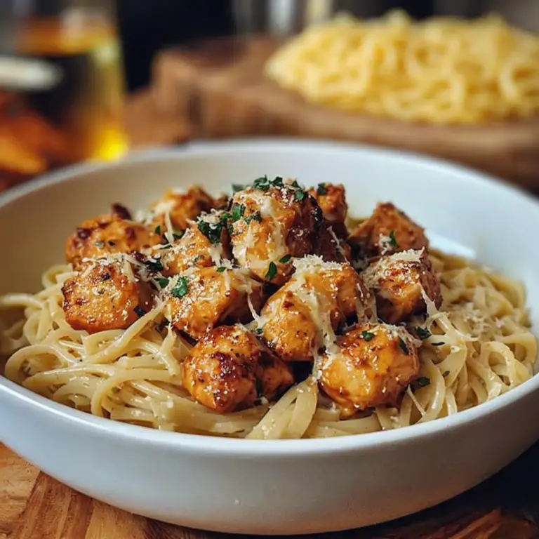 Indulge in Garlic-Butter Chicken Bites paired with creamy Parmesan pasta! Quick, flavorful, and perfect for busy weeknights. 🍝✨ #ComfortFood #ChickenRecipes #PastaLovers #QuickMeals #30MinuteMeals