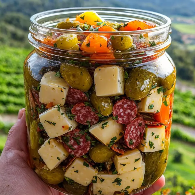 Impress your guests with this Easy Marinated Cheese Appetizer featuring flavorful salami and zesty pickles. Perfect for your next party! #appetizer #cheese #salami #pickles #easyrecipe