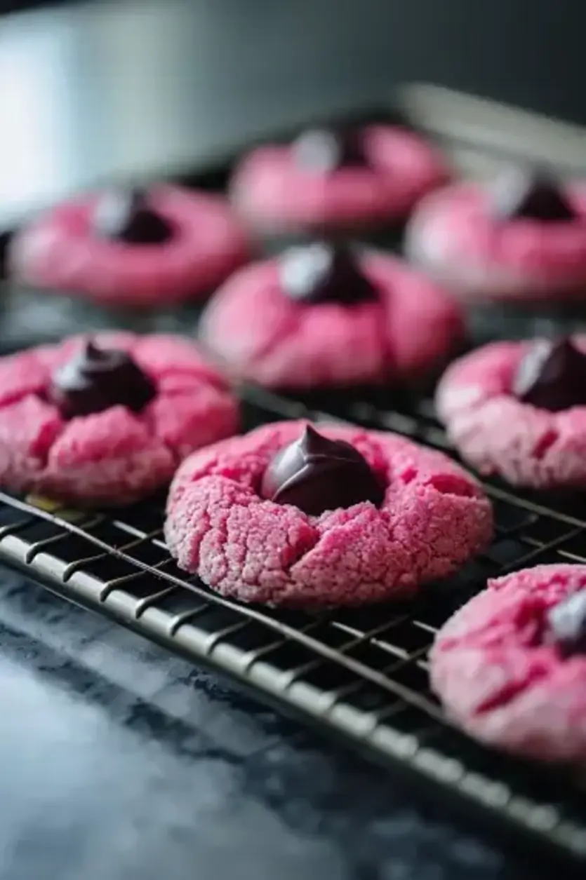 Bake the chilled cookies at 350°F for 10-12 minutes, or until the edges are lightly golden. Immediately after removing from the oven, press one dark chocolate Hershey’s Kiss into the center of each hot cookie, allowing it to melt slightly for that gooey finish.