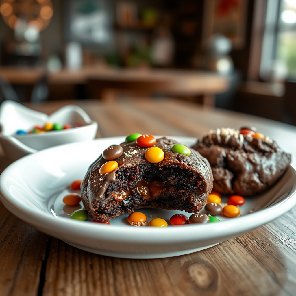 Decadent chocolate cookies with a molten center and colorful M&M surprises. Perfect for celebrations or when you need a sweet pick-me-up!