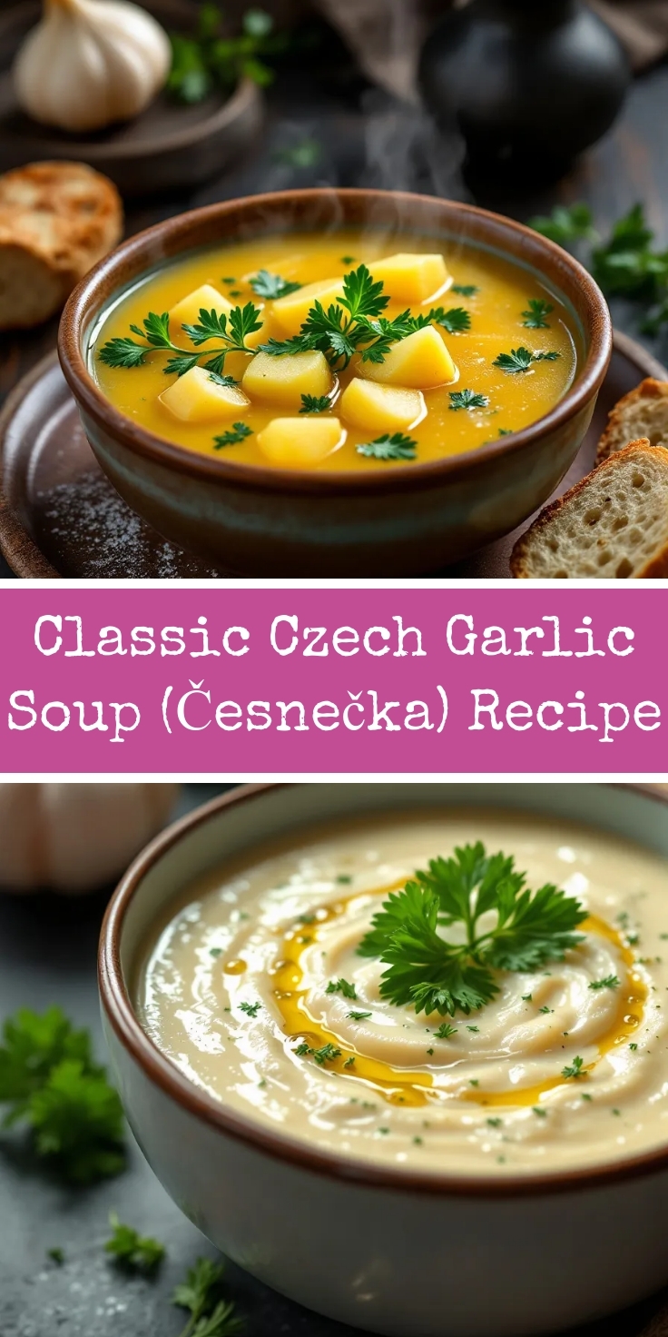 Serve this comforting Czech Garlic Soup piping hot in a deep, rustic bowl to lock in the warmth and aroma. For a beautiful presentation, top each serving with fresh parsley, a swirl of cream, and crispy croutons or fried bread cubes. This creates a wonderful contrast in textures that is simply irresistible. This dish is perfect for a cozy weeknight dinner, yet it also makes a stunning starter for a holiday feast. A warm bowl of Czech Garlic Soup brings a touch of European charm to any table, especially on a chilly evening.