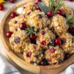Delicious bite-sized balls made with turkey, cranberries, and herbs, perfect for holiday appetizers or sides.