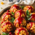 Delicious bite-sized stuffing balls made with cranberries and turkey, perfect for holidays.