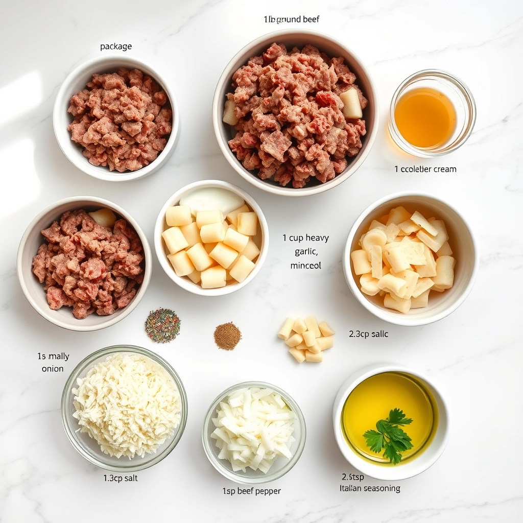 A hearty and comforting dish featuring tender gnocchi, savory ground beef, and a rich creamy sauce.