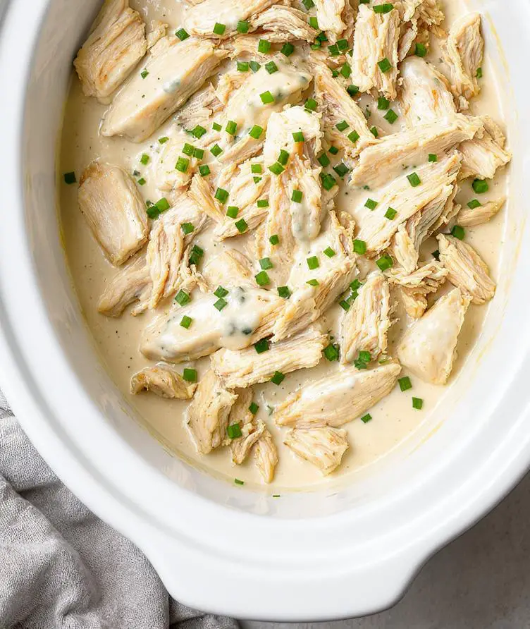 Ranch seasoning, while flavorful, includes herbs that provide trace vitamins, and the sour cream offers calcium for bone health. Chicken broth contributes to hydration with essential minerals. Overall, this easy slow cooker chicken dish can be part of a nutritious diet when paired with veggies.