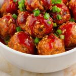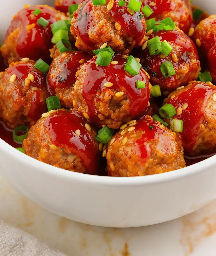 - In a separate bowl, whisk together sweet chili sauce, soy sauce, honey, and rice vinegar. Pour over the meatballs.