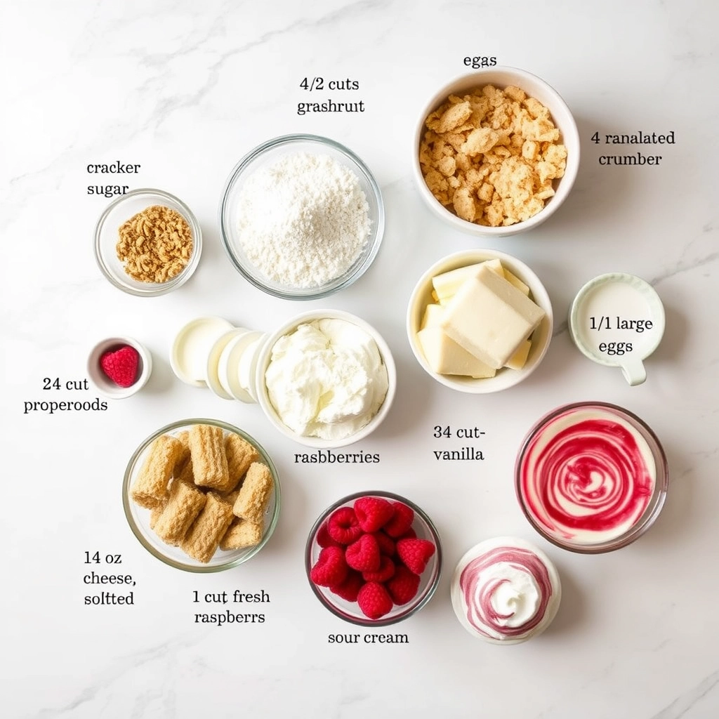- 150g fresh raspberries – Tossed in a spoonful of flour to prevent sinking, these jewels will dot your cheesecake with bursts of tart sweetness.