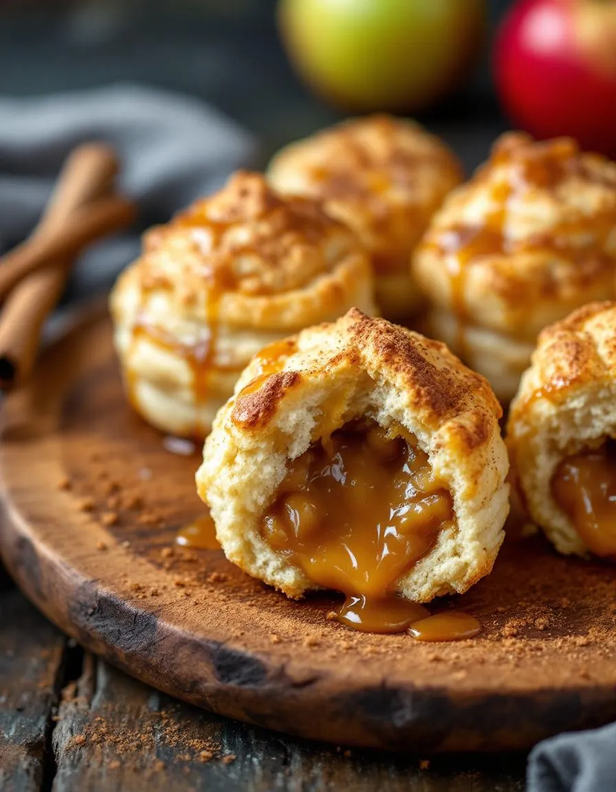 Delicious bite-sized treats filled with spiced apples and gooey caramel, perfect for fall.