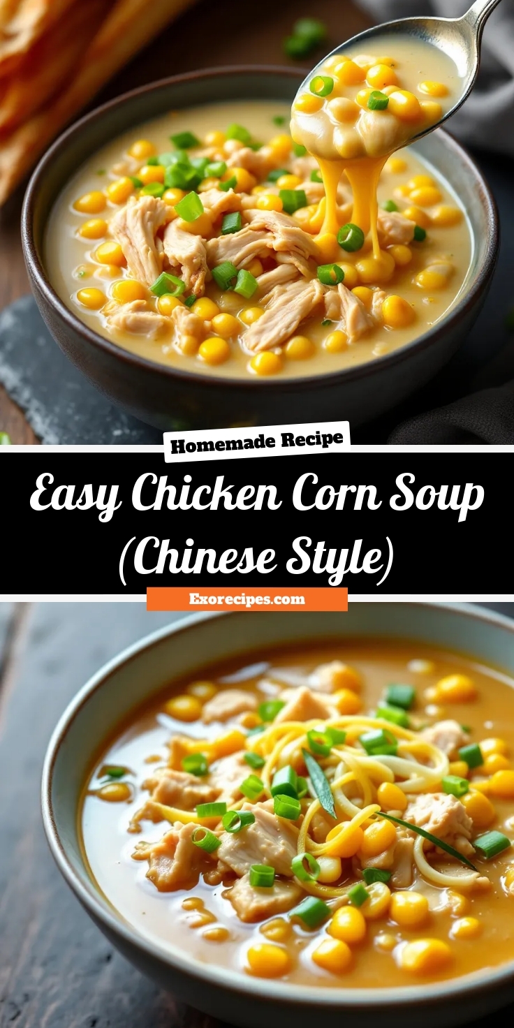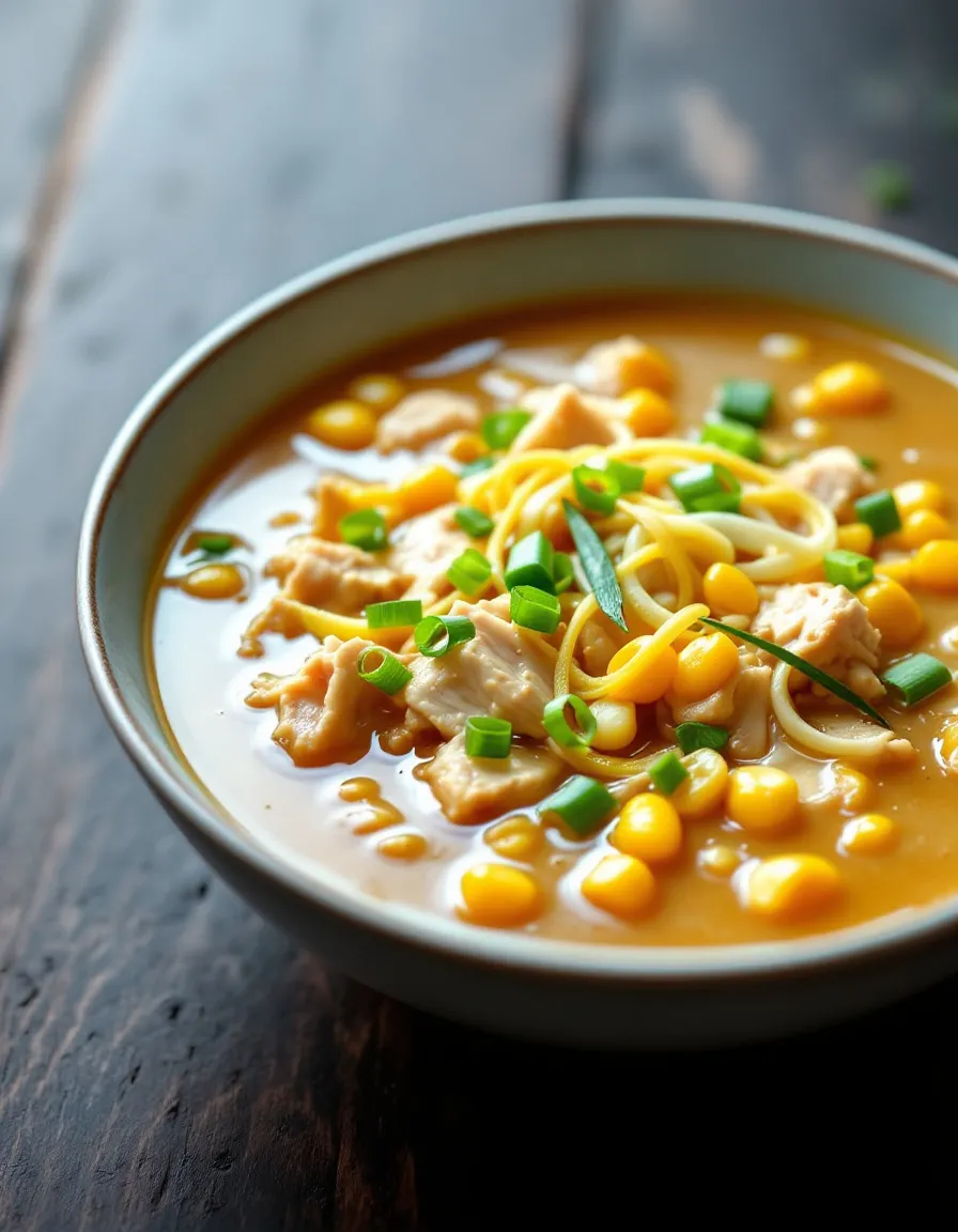 A delicious and comforting Chinese style chicken corn soup made with chicken, sweet corn, and a rich broth that’s both savory and satisfying.
