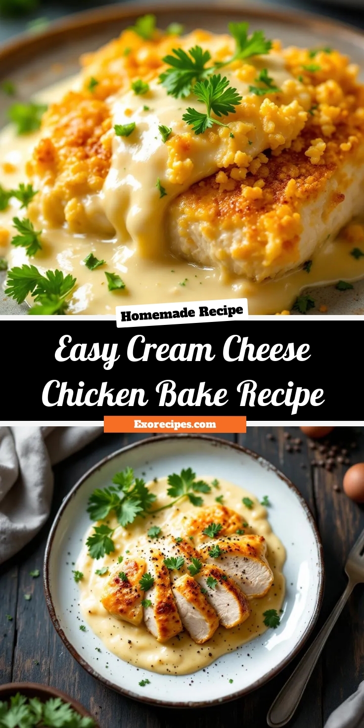 A creamy and comforting chicken dish with a rich cream cheese sauce, baked to perfection with a crispy topping.