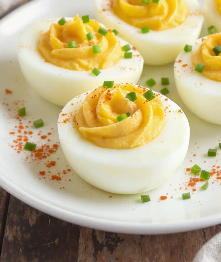 A classic appetizer made with hard-boiled eggs, mixed with mayonnaise and mustard for a creamy filling.