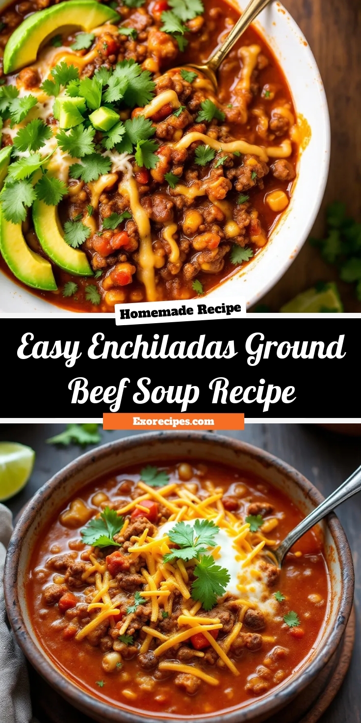 Hearty and comforting soup loaded with ground beef, enchilada flavors, and a delicious blend of ingredients perfect for any day.