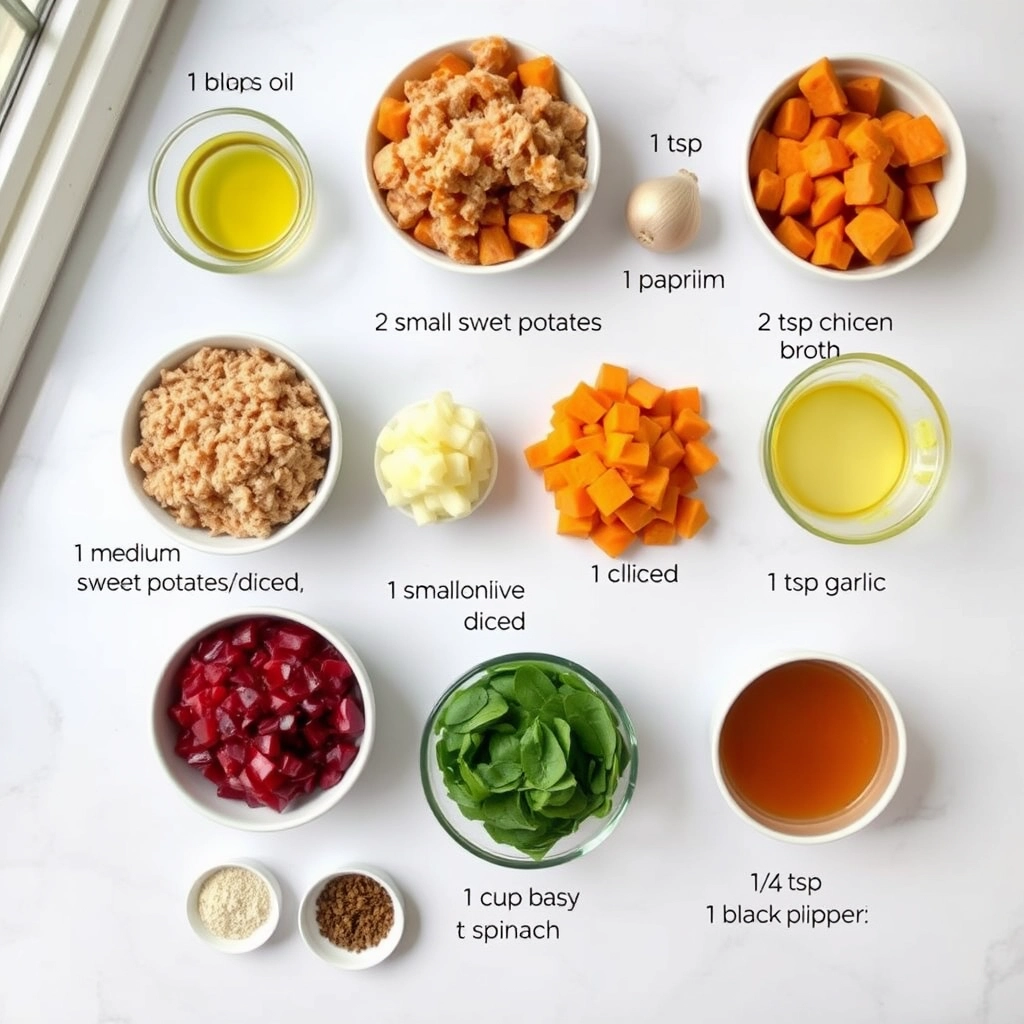 - 2 medium sweet potatoes – About 4 cups diced. Pro tip: Look for ones with deep orange flesh—they’re sweeter and pack more nutrients.