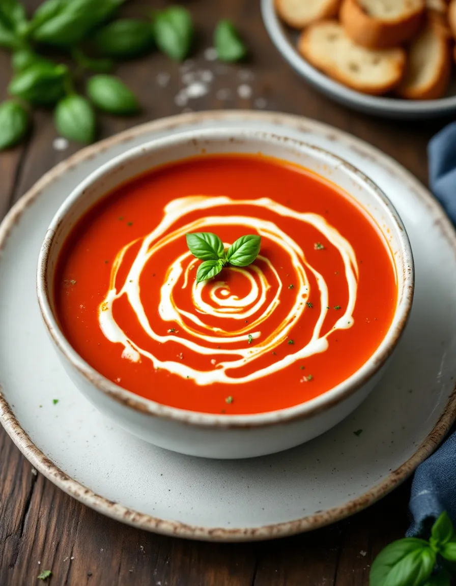 First, preheat your oven to 400°F for a perfect roast. Next, grab a large baking sheet and toss your halved tomatoes, onion chunks, and whole garlic cloves with a generous drizzle of olive oil. Generously season everything with salt and pepper; this foundational step builds incredible flavor. Roast the vegetables for about 30 minutes until they develop beautiful, caramelized edges. Meanwhile, you can clean up or prepare your garnishes. Once roasted, carefully transfer the hot vegetables into a blender. Add your vegetable broth and a handful of fresh basil leaves. Then, blend the mixture until it becomes completely smooth and velvety. For a silky finish, pour the soup through a fine-mesh sieve back into your pot. Finally, warm the soup through on the stovetop and stir in a splash of cream if you like. This entire process for Easy Homemade Roasted Tomato Soup is wonderfully straightforward and delivers a rich, deep flavor that canned soup simply cannot match.