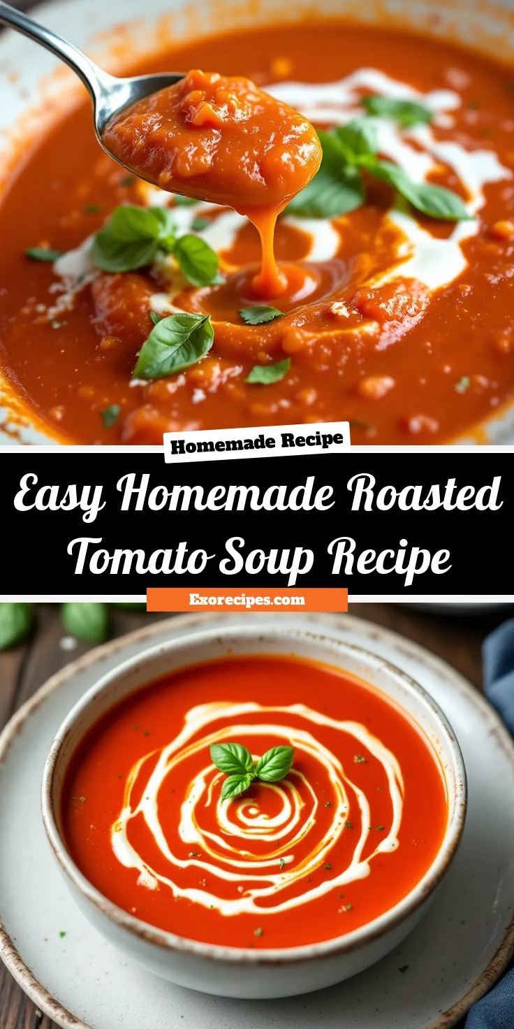 This Easy Homemade Roasted Tomato Soup is a vibrant and flavorful dish that celebrates the humble tomato. We roast the tomatoes first to caramelize their natural sugars, which creates an incredibly deep and rich flavor base. This process is a game-changer compared to simply simmering them on the stovetop. The result is a velvety smooth soup that tastes far more complex than its short ingredient list would suggest. This recipe matters because it proves that you do not need a lot of time or fancy skills to create a restaurant-quality meal in your own kitchen. It fits our blog’s mission perfectly: to provide approachable, from-scratch recipes that empower home cooks. Whether you are a beginner or a seasoned pro, this soup is a rewarding and delicious project. It pairs beautifully with a classic grilled cheese sandwich for the ultimate comfort food experience. Moreover, you can easily make a big batch for meal prep, as it stores and reheats wonderfully. This makes it a fantastic staple for busy families looking for healthy and satisfying options. Essentially, this soup is a testament to how a few good ingredients and a simple technique can yield spectacular results.