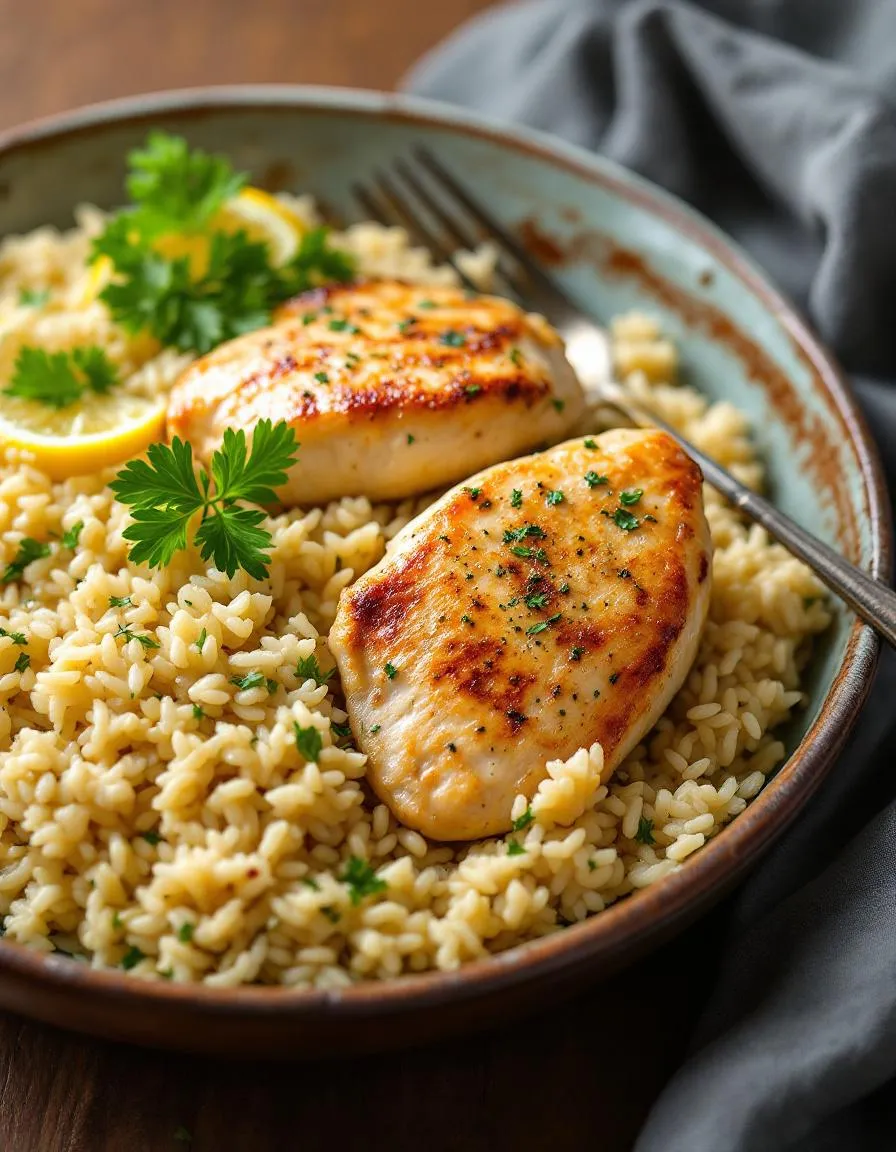 A flavorful and easy one-pot meal featuring tender chicken and fragrant rice with lemon and herbs.