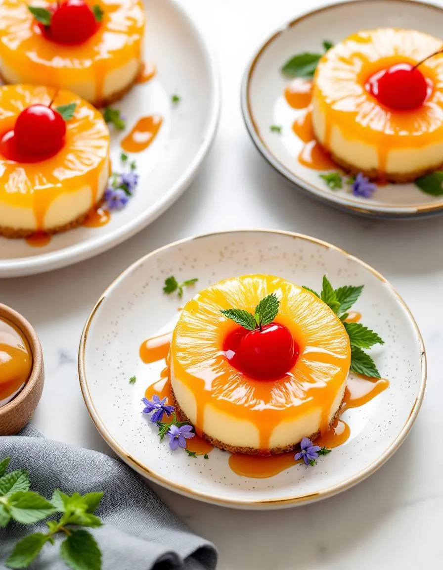 Delightful individual cheesecakes with a tropical pineapple upside-down twist.