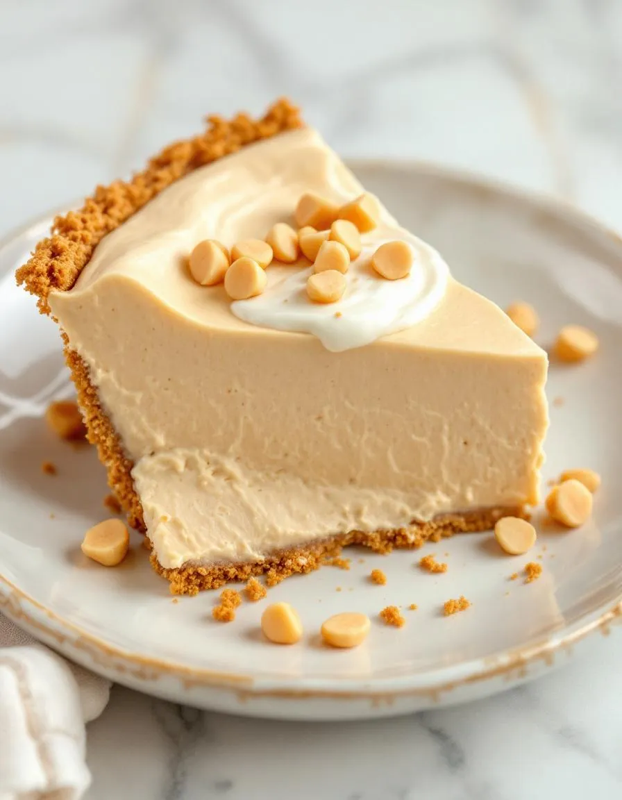A rich and creamy peanut butter pie with a graham cracker crust, perfect for any occasion.