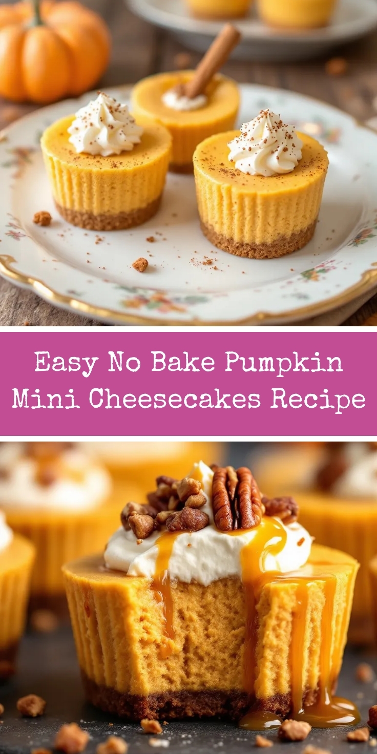 You can easily elevate these No Bake Pumpkin Mini Cheesecakes with a few simple tweaks. For an extra flavor dimension, consider swapping the standard graham cracker crust for a gingersnap crust, which introduces a spicy, molasses-rich depth that pairs wonderfully with the pumpkin. A dollop of freshly whipped cream on top adds a light, airy contrast, while a drizzle of salted caramel sauce introduces a delicious sweet-and-salty complexity. Toasting your spices in a dry pan for a minute before mixing them into the filling will wake up their essential oils, making their fragrance and taste even more potent. For a final flourish, a sprinkle of chopped pecans provides a delightful crunch. If you love complementary flavors, serving these mini cheesecakes alongside a scoop of our no churn vanilla bean ice cream creates a truly spectacular dessert duo.