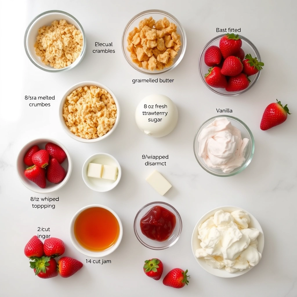 - Fresh strawberries – The star of the show! Slice them thin for even layers, and save a few for garnish.