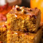 These bars stand out for their incredible balance of moist, chewy texture and bold flavors, where the natural sweetness of maple syrup enhances the subtle spice of pumpkin puree.
