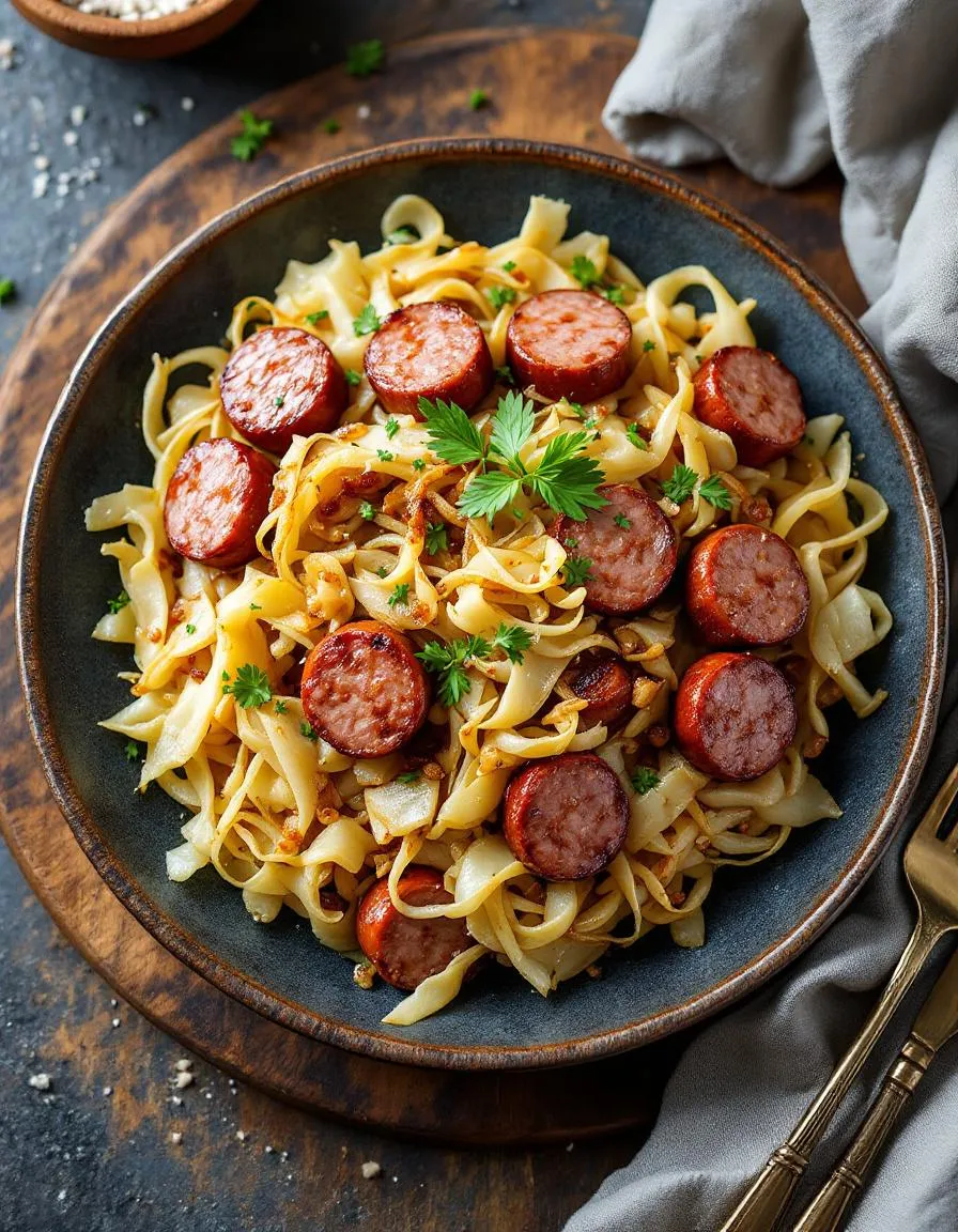 I first discovered the magic of this combo during a chaotic “empty fridge” evening. My Polish grandmother’s voice echoed in my head: “Child, cabbage is canvas—it holds the flavors you give it.” She was right. When paired with smoky sausage and a splash of apple cider vinegar, those crisp shreds transform into something golden and irresistible. The best part? This dish is forgiving enough for substitutions (I’ve used everything from kielbasa to plant-based sausages) and gentle on the grocery budget—a true testament to how humble ingredients can shine.