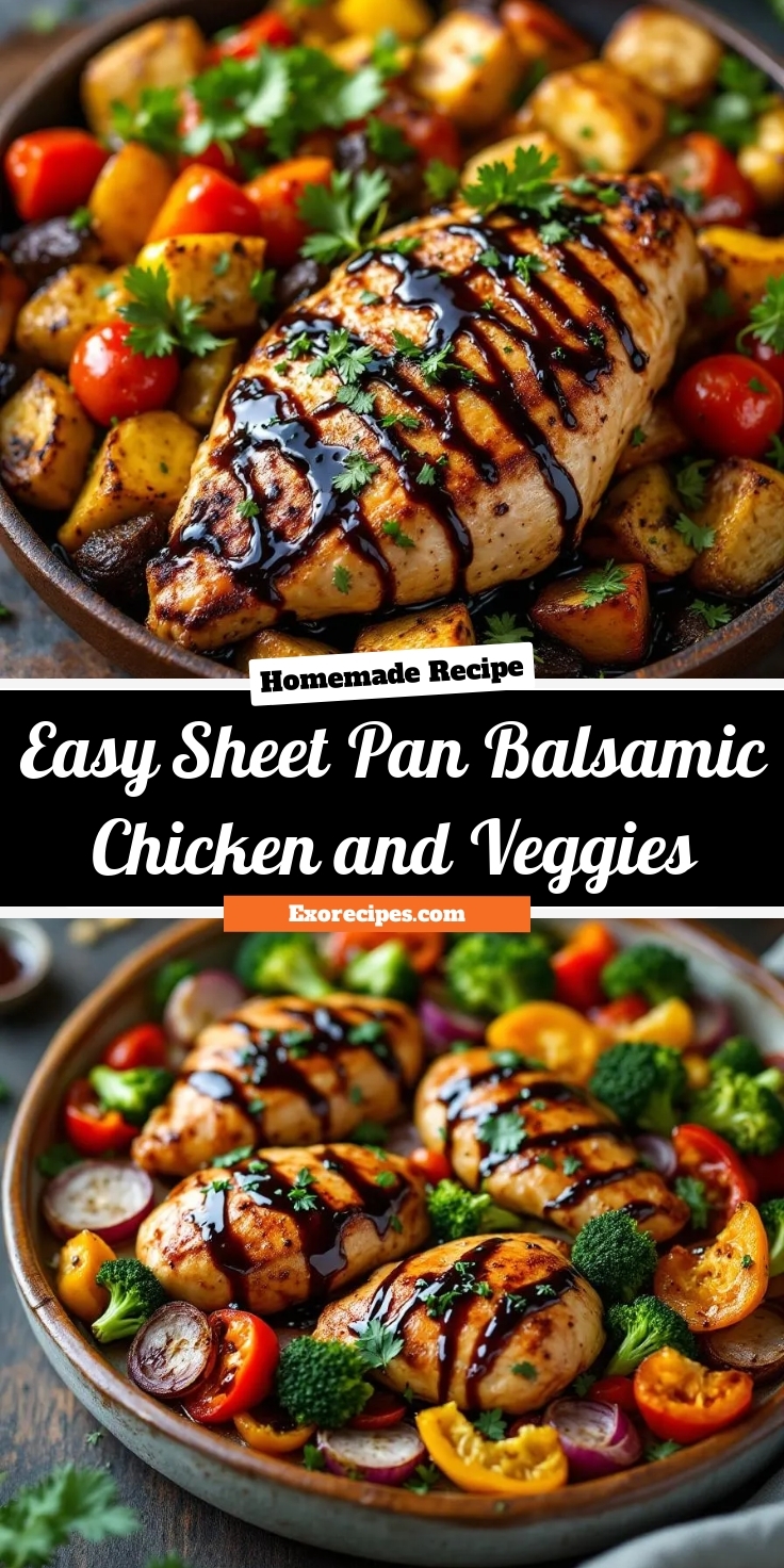 A simple, flavorful one-pan meal with tender chicken and roasted vegetables tossed in a tangy balsamic glaze.