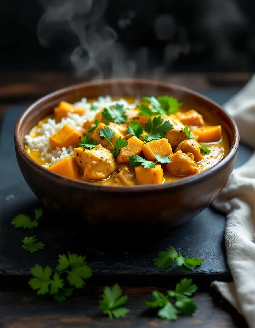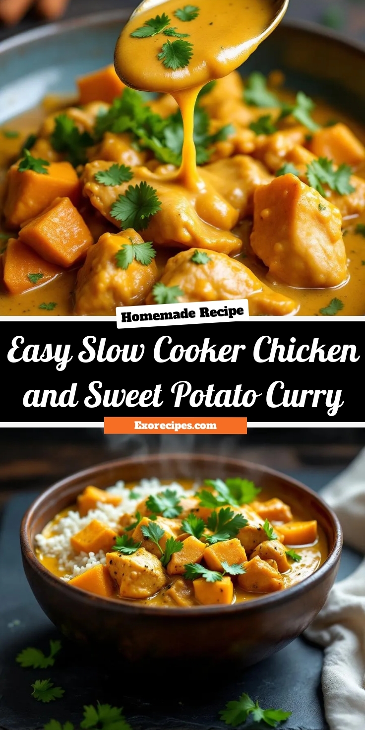 A comforting and aromatic curry with tender chicken, sweet potatoes, and creamy coconut milk, all simmered to perfection in a slow cooker.