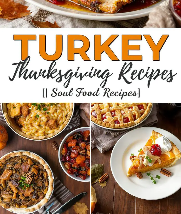 A collection of soul food dishes perfect for Thanksgiving, featuring hearty flavors and traditional Southern ingredients.