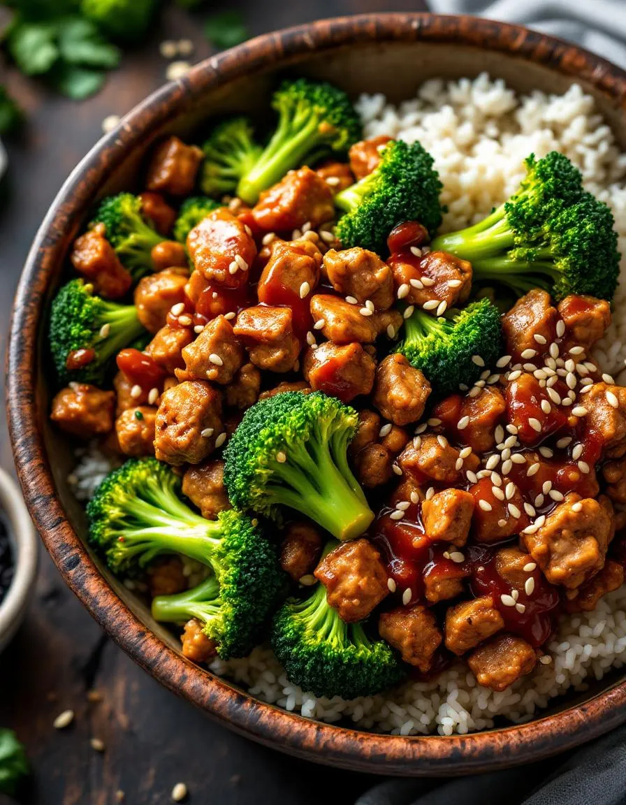A quick and healthy bowl featuring savory ground turkey, crisp broccoli, and a delicious sweet and spicy sauce.