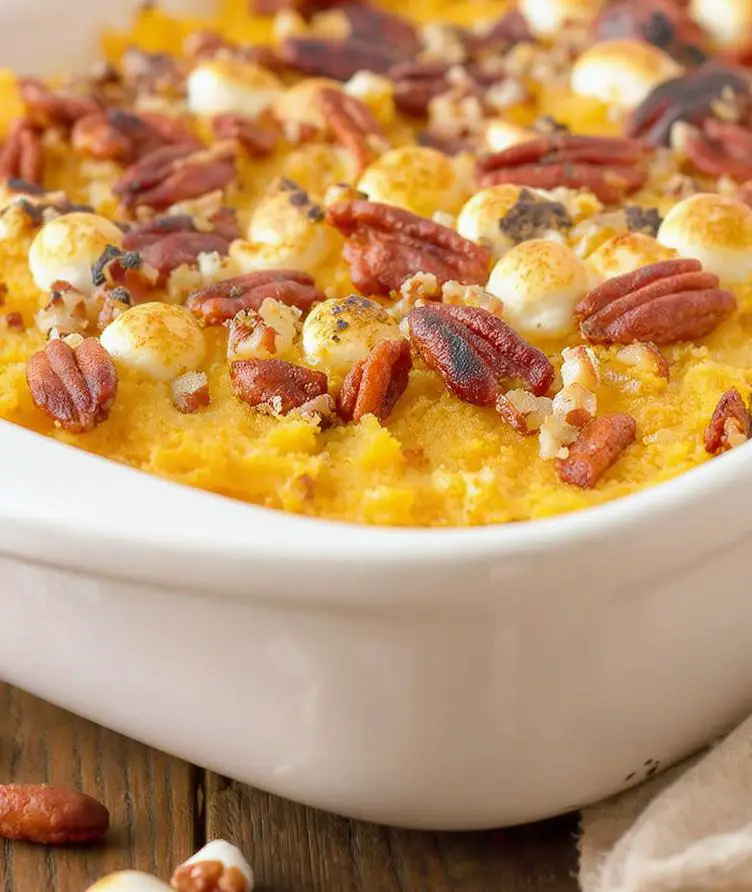 Answer: While this recipe doesn’t include marshmallows, you can add them to the topping for extra sweetness. For a healthier swap, use chopped apples or more pecans instead.