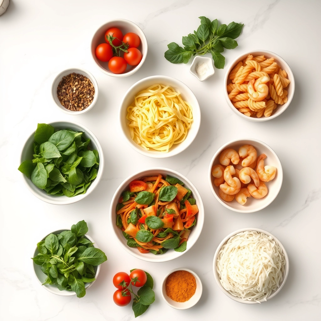 A delicious and easy-to-make pasta dish with succulent shrimp, fresh spinach, and a rich tomato sauce.