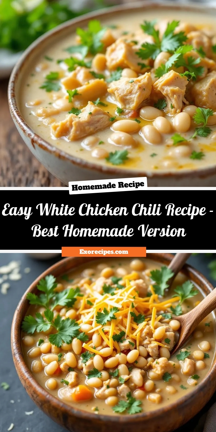 A creamy and comforting chili made with tender chicken, white beans, and mild green chiles, perfect for a cozy meal.