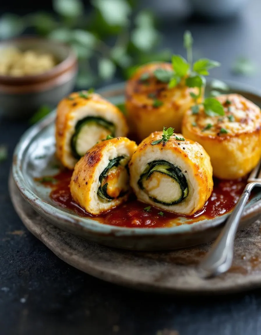 Tender chicken breasts rolled with seasoned zucchini and cheese, baked to perfection for a healthy and flavorful meal.