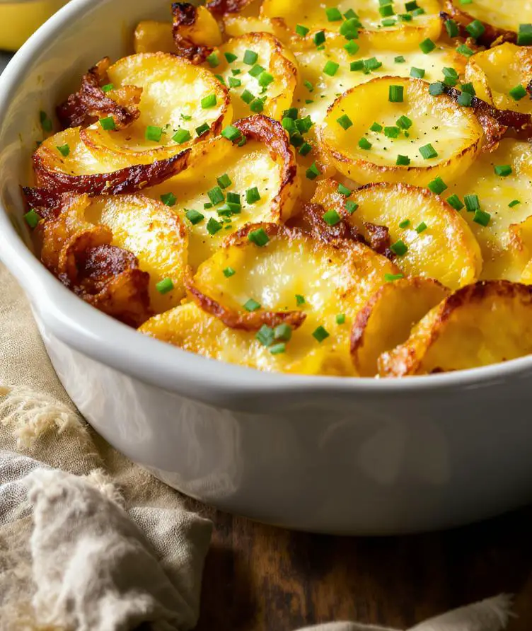 Imagine tender slices of potato baked to perfection with the sweet, caramelized depth of onions and the unmistakable savoriness of French onion soup—it’s a hearty twist on classic comfort food that rivals any gourmet meal.