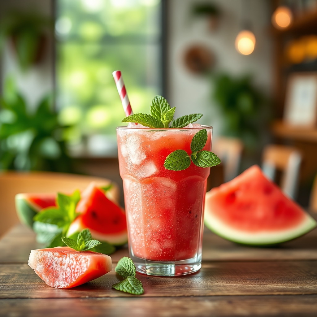 A cool and hydrating summer slush made with fresh watermelon, mint, and a hint of lime for the perfect refreshing treat.