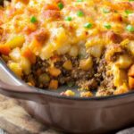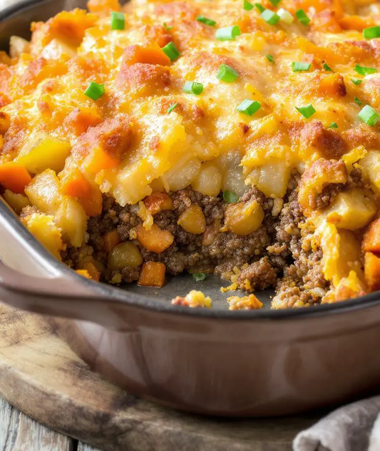 Adapted from classic American comfort food, this recipe combines the heartiness of ground beef with the earthiness of potatoes and vegetables.