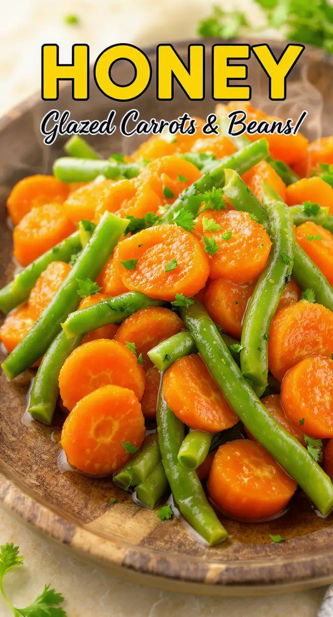 A sweet and savory side dish with carrots and green beans glazed in honey for a simple, flavorful addition to any meal.