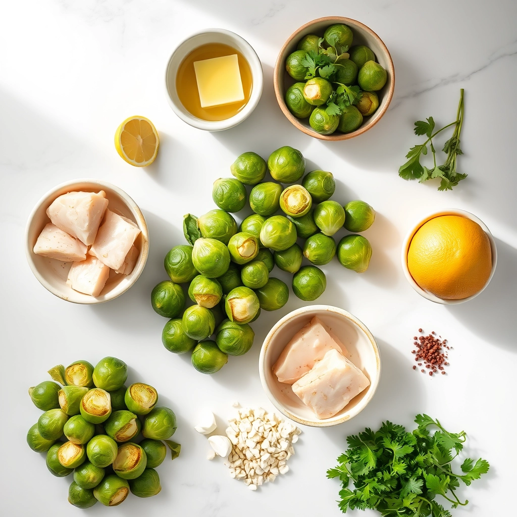 A light and flavorful dish featuring tender cod fillets with a lemon garlic butter sauce, served over roasted Brussels sprouts for a healthy and satisfying meal.