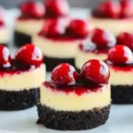 Are you searching for a dessert that’s as visually stunning as it is delicious, something that will have your guests raving and reaching for seconds? Look no further than these irresistible Mini Cheesecakes with Maraschino Cherry Magic! In a world where dessert trends come and go, the classic cheesecake remains a timeless favorite. But who has the time or space for a full-sized cheesecake, especially for parties and gatherings? That’s where these delightful mini bites come in. With a rich, crunchy Oreo base, a luxuriously creamy filling, and a vibrant, jewel-toned maraschino cherry topping, these mini cheesecakes offer all the indulgence of their larger counterparts in perfectly portioned packages. They’re incredibly easy to make, require no special equipment beyond a muffin tin, and are sure to be the star of any occasion, from casual get-togethers to elegant celebrations. Get ready to impress with a dessert that’s truly magical!