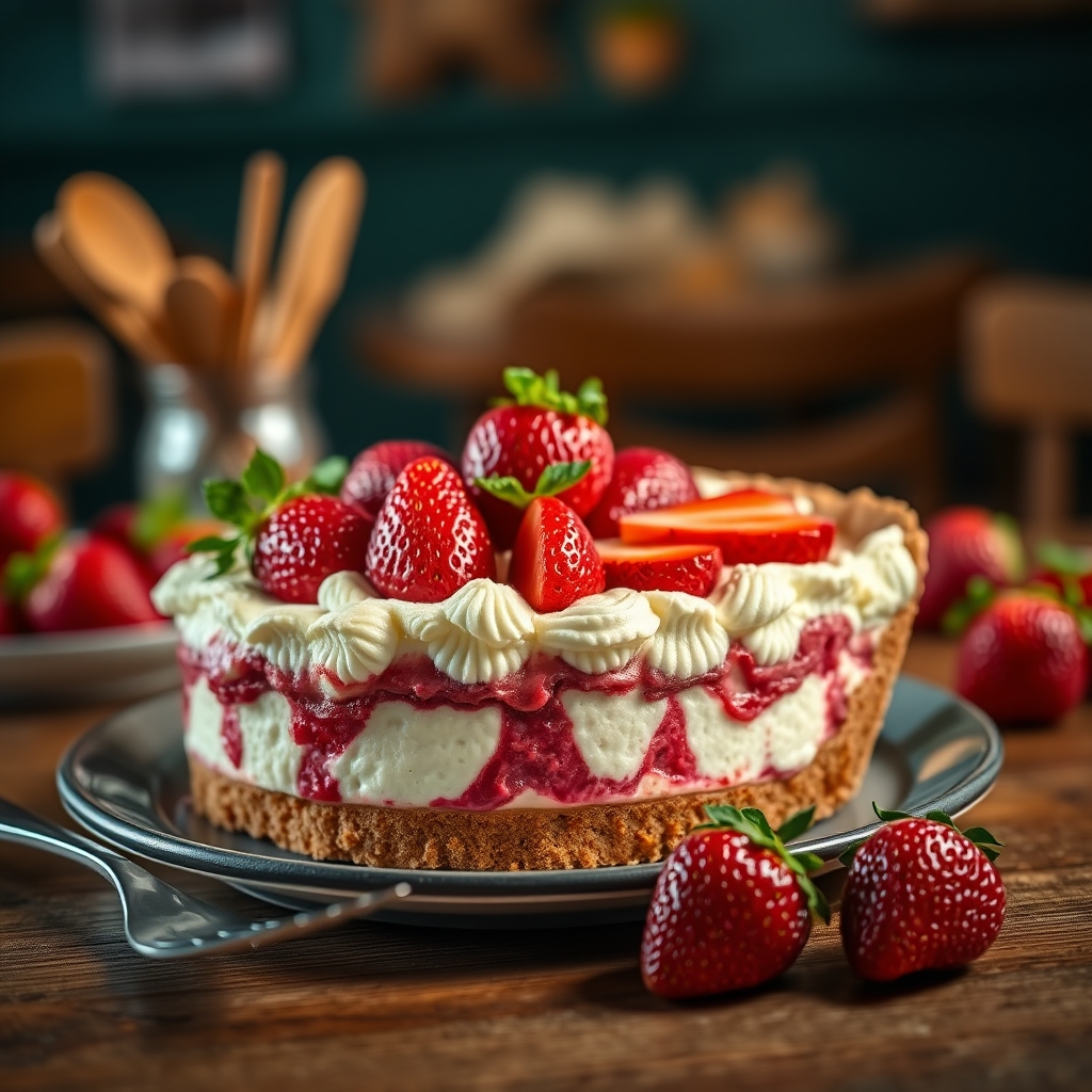 A creamy, dreamy no-bake strawberry cheesecake pie with a buttery graham cracker crust and fresh strawberry topping. Perfect for summer gatherings or when you want a fuss-free dessert!