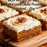 Imagine biting into tender bars infused with the essence of fall, crowned by a velvety layer of tangy cream cheese frosting that’s as easy to whip up as it is delicious.