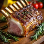 Discover the secret to the perfect roasted rack of lamb with garlic and herbs. A simple yet impressive dish! #RoastedLamb #DinnerParty