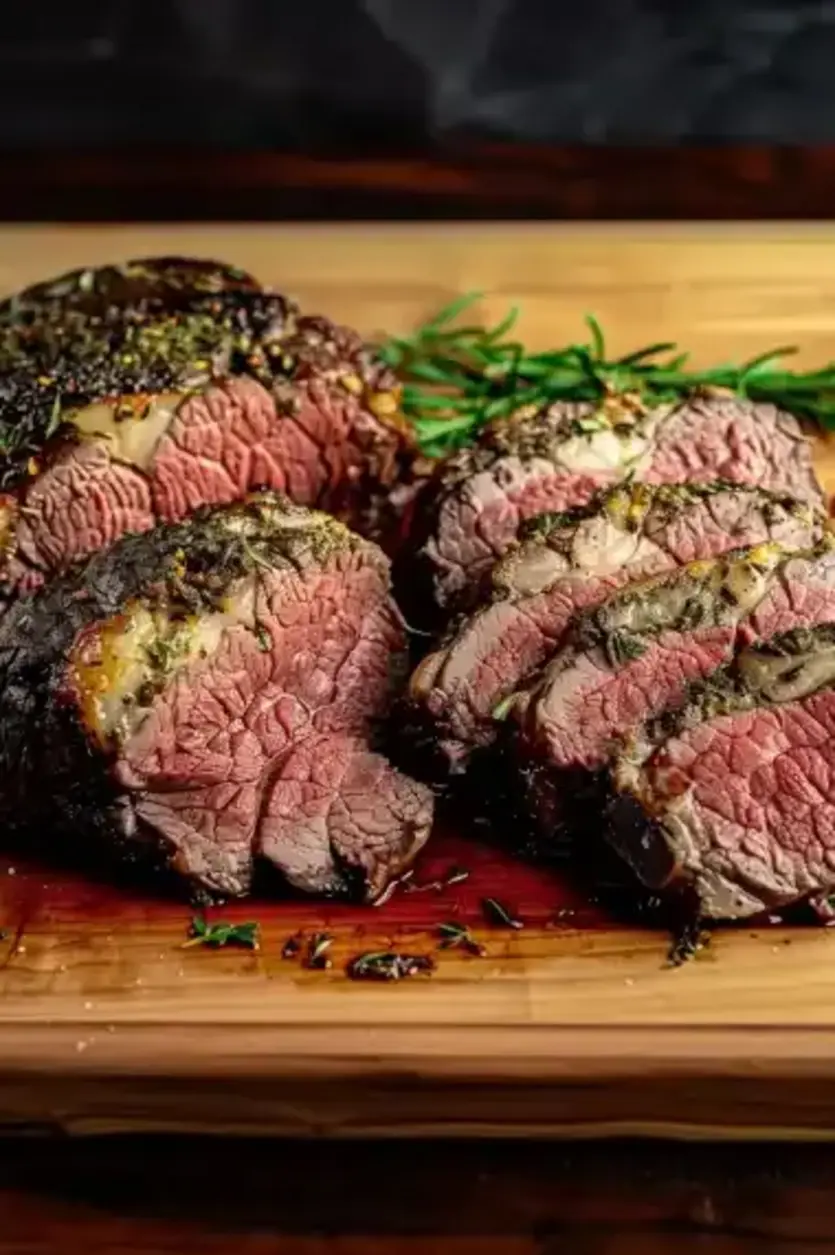 Unbeatable Texture: The science behind the texture of this Smoked Garlic Butter Prime Rib is all about controlled smoking and fat distribution. Smoking at 225°F allows the prime rib’s marbling to render slowly, breaking down connective tissues for an incredibly tender result. The garlic butter acts as a barrier, locking in juices and preventing over-drying, while the herbs contribute to a slight caramelization on the surface. This combination yields a perfect medium-rare doneness with a juicy, melt-in-your-mouth center and a crisp, flavorful bark—achieved through the Maillard reaction enhanced by the smoke.