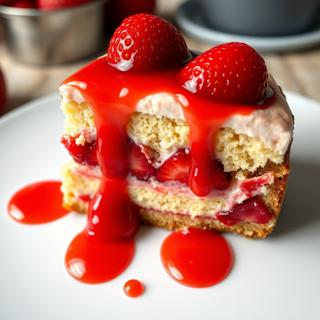 - Assemble: Slice the shortcake into wedges. Layer each piece with macerated strawberries and a dollop of whipped cream. Serve immediately.
