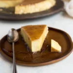 When you’re ready to serve, run a thin knife around the edges of the flan to loosen it. Place a large serving plate (with a slight rim to catch the syrup) over the dish, then confidently invert it in one swift motion. You’ll hear a satisfying thud as the flan releases, followed by the gentle flow of caramel syrup pooling around it. It’s a moment of pure magic. I love serving this on a simple white plate to let the golden color shine. You can garnish with toasted coconut flakes — toast them in a dry pan until golden for extra crunch — or a few fresh berries like raspberries, which provide a bright tart contrast.