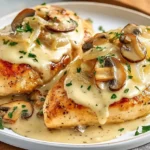 This smothered chicken dish features juicy chicken breasts topped with caramelized onions, sautéed mushrooms, and melted Monterey Jack cheese. It’s a simple yet flavorful recipe inspired by Texas Roadhouse’s classic comfort food. Perfect for a weeknight dinner or a special treat!