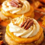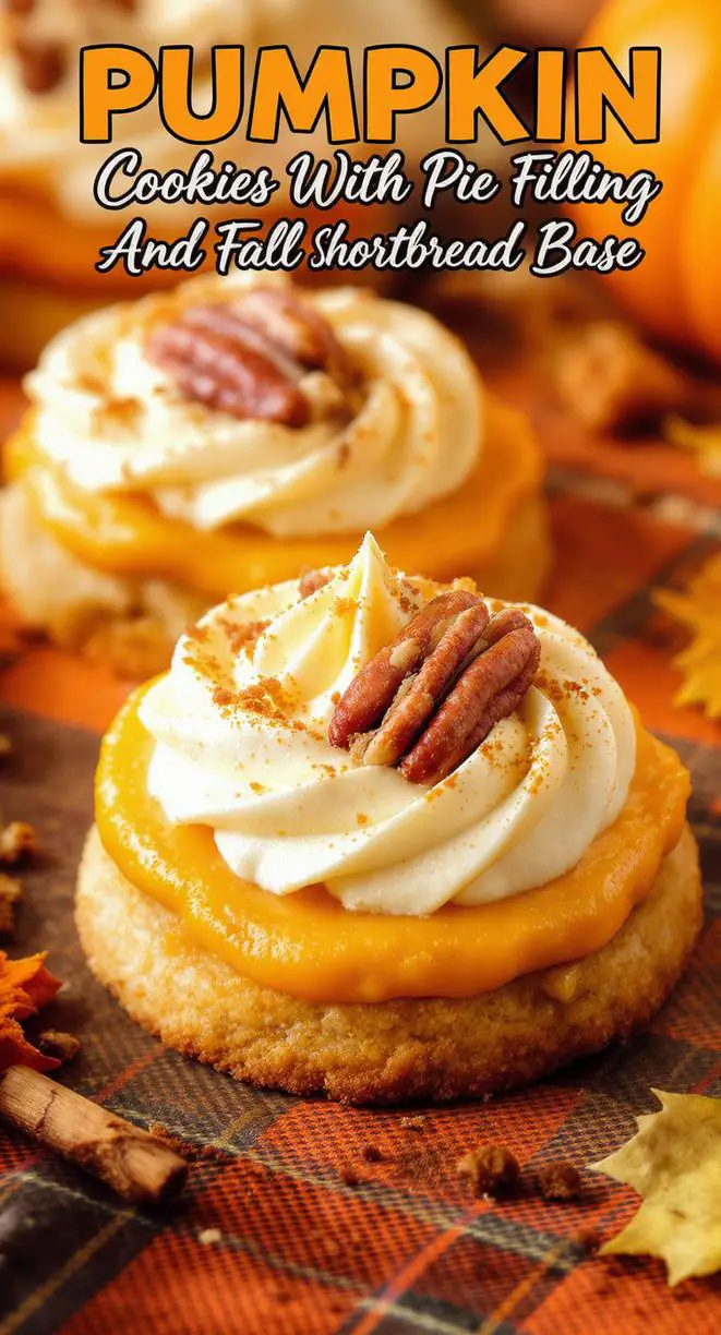 These Thanksgiving cookies feature a buttery fall shortbread base topped with creamy pumpkin pie filling, perfect for holiday gatherings.