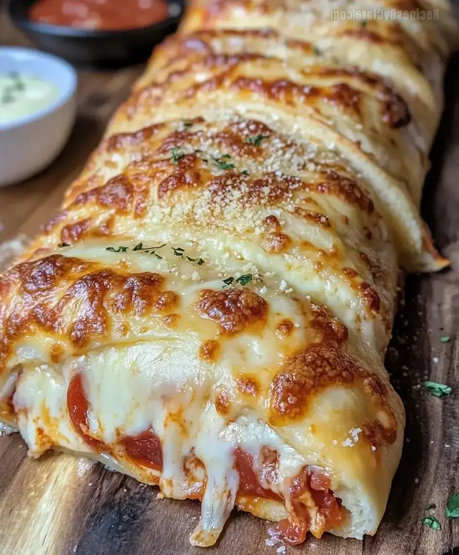 Golden, bubbly, and packed with cheesy pepperoni goodness—this stromboli is a visual and culinary delight.