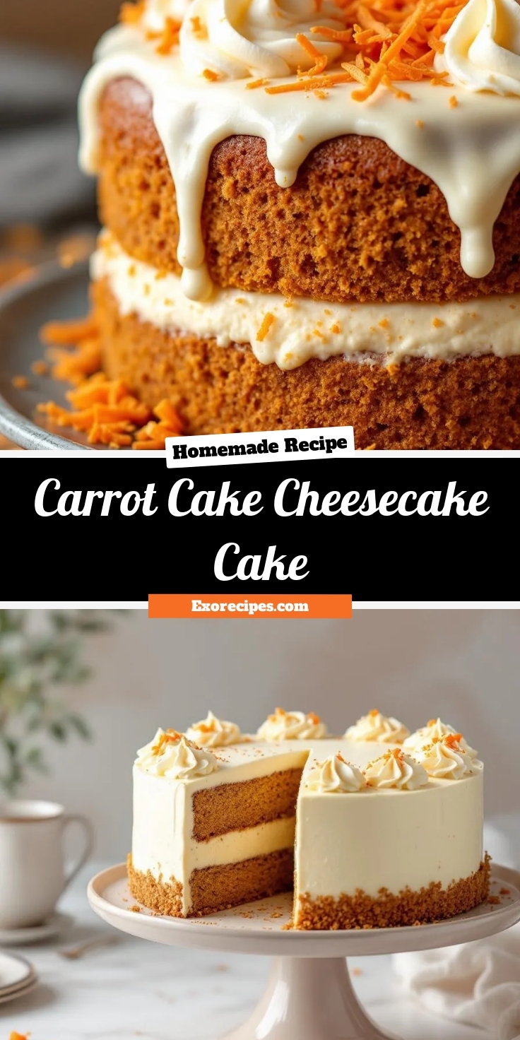 A decadent layered dessert combining the flavors of carrot cake and creamy cheesecake.